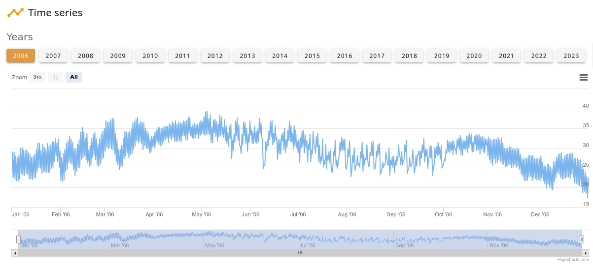 - visualisations en ligne sous forme de séries temporelles, de tracés de trajectoires, de cartes 2D